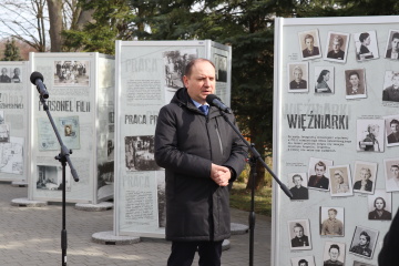„Mieszkałam i pracowałam w dołku przy młynie. Zbierałam z innymi dziewczętami kamienie, zbierałam ziemniaki, pracowałam w inspektach u właściciela majątku Fuge. Za przewinienia drobne karano nas w ten sposób, że wysyłano do wykopywania pieńków drzewnych, nie dawano kolacji, zamykano w piwnicy...” – wspominała Danuta Kęsik, była więźniarka podobozu w Dzierżąznej. To jeden z cytatów, jaki można przeczytać na planszy nowej wystawy plenerowej Muzeum pt. „Tylko praca i głód. Historia filii niemieckiego obozu koncentracyjnego dla dzieci polskich”. Otwarcie ekspozycji odbyło się 17 marca br. w parku dworskim w Dzierżąznej.